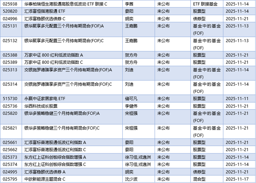 三、11月03日新发基金一览(不包含传统封闭式基金)