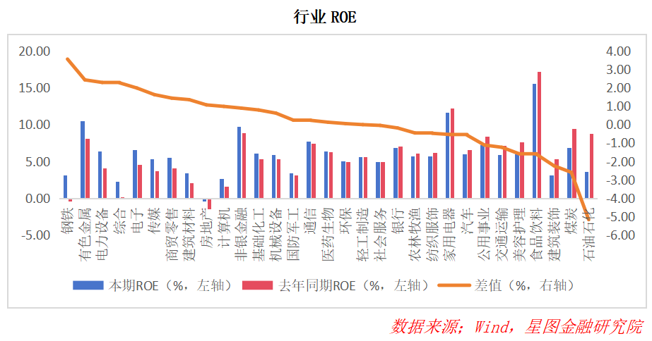 从各行业ROE的修复情况来看,钢铁板块ROE上修值最高,由去年同期的-0.37% 提升至3.18%;其次为有色金属、电力设备、电子板块,ROE上修值分别为2.42%、2.28%与2.26%。