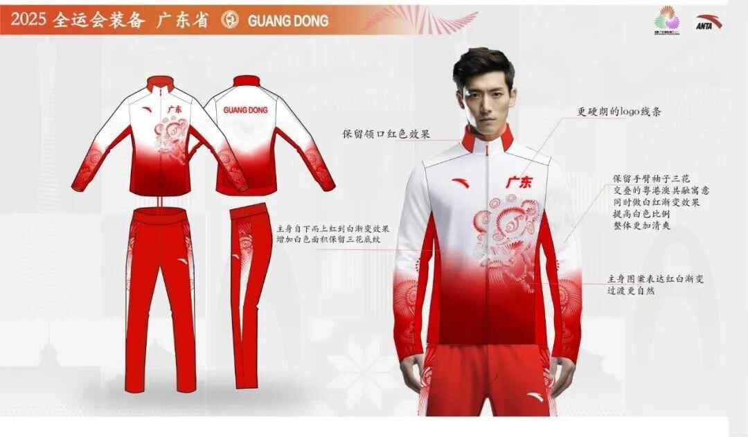 ,据介绍,领奖服以红白渐变为图案基底,把广东省独特文化元素舞龙舞狮中的“醒狮”形象与全运会主视觉标识的烟花设计做结合,既有广东文化的审美特色,又寓意广东省代表团对本次全运会比赛全力以赴,再创佳绩。,