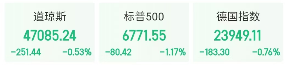 3、隔夜,美股三大指数全线重挫,纳指跌2.04%,标普500跌1.17%,道指跌0.53%。纳斯达克中国金龙指数跌2.05%。大型科技股普跌,英特尔跌超6%,特斯拉跌超5%,英伟达跌超3%,谷歌跌逾2%,亚马逊、Meta跌超1%。因电影《大空头》而闻名的投资者Michael Burry正大举做空英伟达、Palantir,其针对这两只个股的看跌期权名义价值合计超10亿美元,占到了公司投资组合权重的80%。多位华尔街大佬警告称,美股估值水平令人担忧。