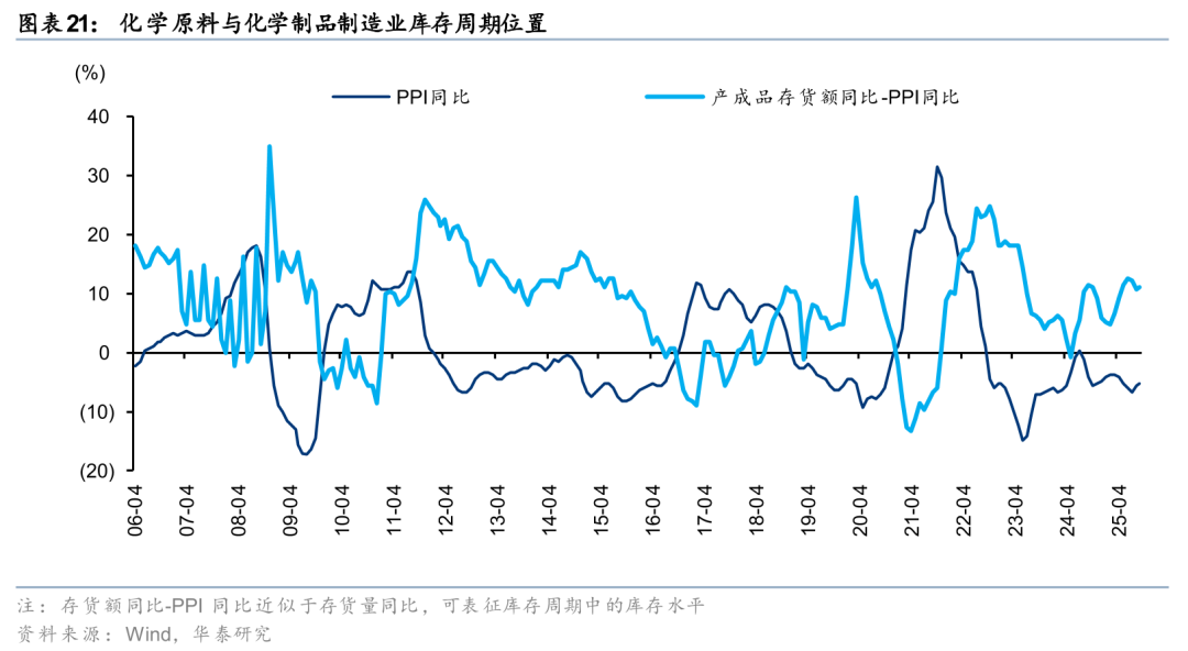 从库存周期角度,24Q4以来化学原料与制品制造业PPI同比增速整体下行,产成品存货同比-PPI同比(代表行业库存量变化趋势)则有所上行,伴随下游需求持续恢复,预计26年行业有望逐步转向主动补库阶段。我们认为,伴随2025年以来行业资本开支增速显著下降,叠加“反内卷”有望助力供给端协同及落后产能出清,而内需有望进一步复苏及出口亚非拉等支撑需求,大宗化工品有望逐步复苏。油价长期存在成本底部支撑,具备增产降本能力及天然气增量的高分红企业具有配置机遇;大宗化工方面,关注制冷剂、异氰酸酯等格局率先优化品种,以及有机硅/农药/PVA等供需面有望改善并带来涨价弹性的品种;下游制品/精细品方面,食饲药添加剂行业Q4需求旺季到来,以及原料成本改善助力盈利修复;出口方面,国内化工品具备成本优势和性价比,国内轮胎依托性价比优势仍有望持续提升全球份额;高股息资产方面,伴随资本开支下降等,主动分红意愿和能力或提升,磷资源有望维持至少3年高景气。
