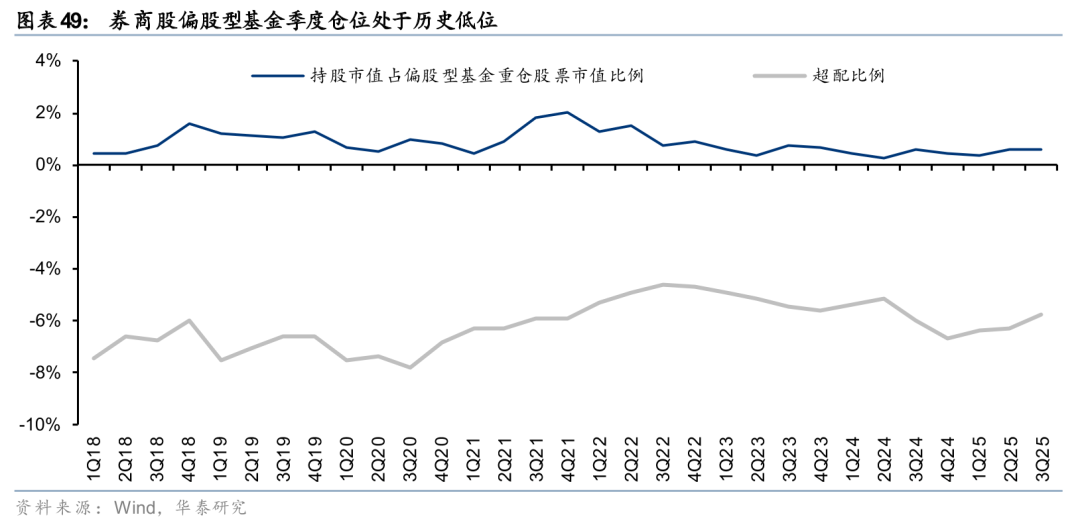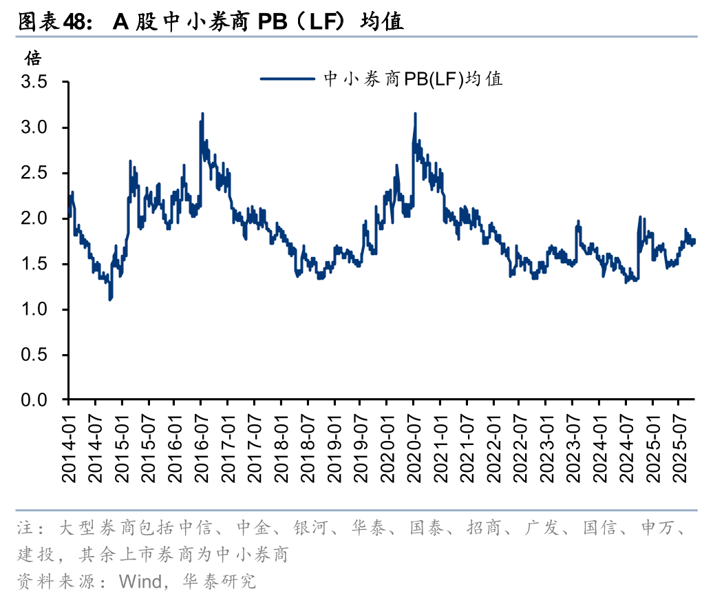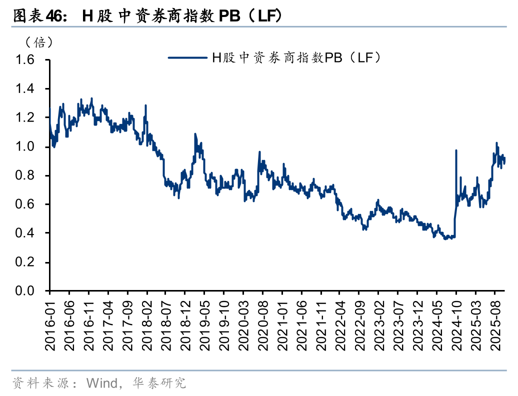 往前看,大财富业务在交投持续活跃的背景下趋势上行,投行市场显著复苏,投资业务OCI股息收益和方向性弹性兼具。国际业务以香港为桥头堡,受益于港股市场交易活跃、IPO发行回暖。25Q3末主动偏股基金券商股仓位仅0.62%,仍处历史低位。2018年来的行情中A股大型券商/中小券商PBLF均值约1.4x-2.0x/1.5x-2.3x,当前1.50x/1.71x;H股中资券商指数PBLF 0.86x,处于2016年以来69%分位。看好券商业绩成长性和高性价比的价值修复机遇,建议重点关注龙头港股券商、具备估值优势的A股龙头及特色中小券商。