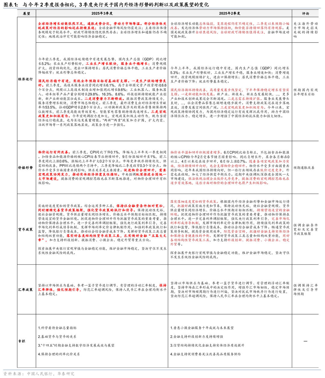 从货币政策总结、经济形势判断、周期性政策思路、以及未来政策重心四个方面,我们对报告分析如下(请见图表1中与今年2季度相比,3季度货币政策执行报告的措辞变化)——