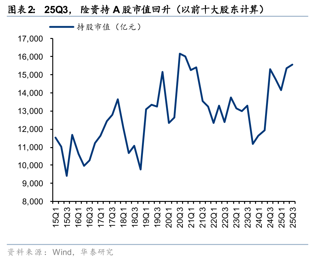 规模:25Q3,险资持股规模环比Q2小幅回升;