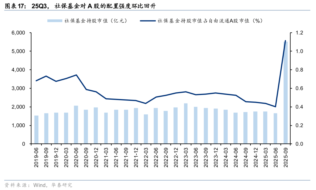 规模:25Q3社保基金持股占比回升至1.12%,位于2019年以来历史高位;