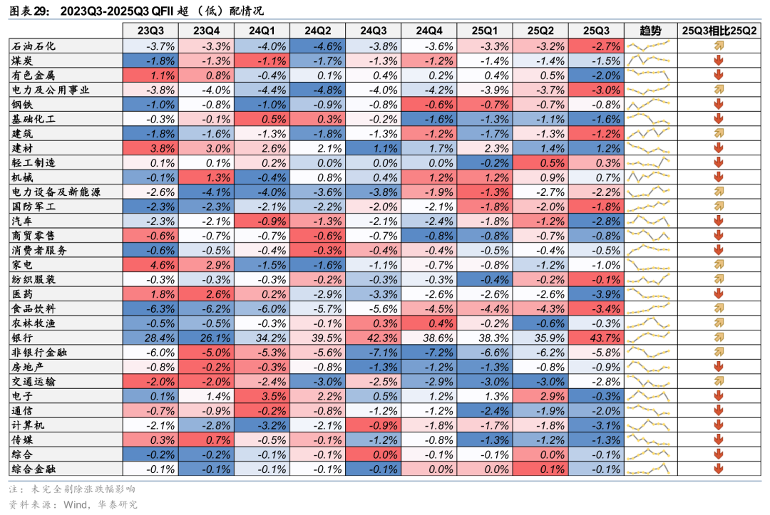 QFII/RQFII:25Q3加仓银行、电力设备等方向