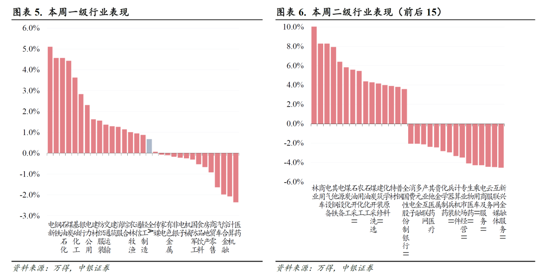 行业涨多参半,情绪先扬后抑。本周受美国政府持续停摆等因素影响,海外科技股波动较大,在此影响下,A股科技股整体表现偏弱。本周中游资源加工、上游资源行业表现较好,钢铁、石油石化、煤炭涨幅居前,反映市场对于“反内卷”工作的交易有所升温。
