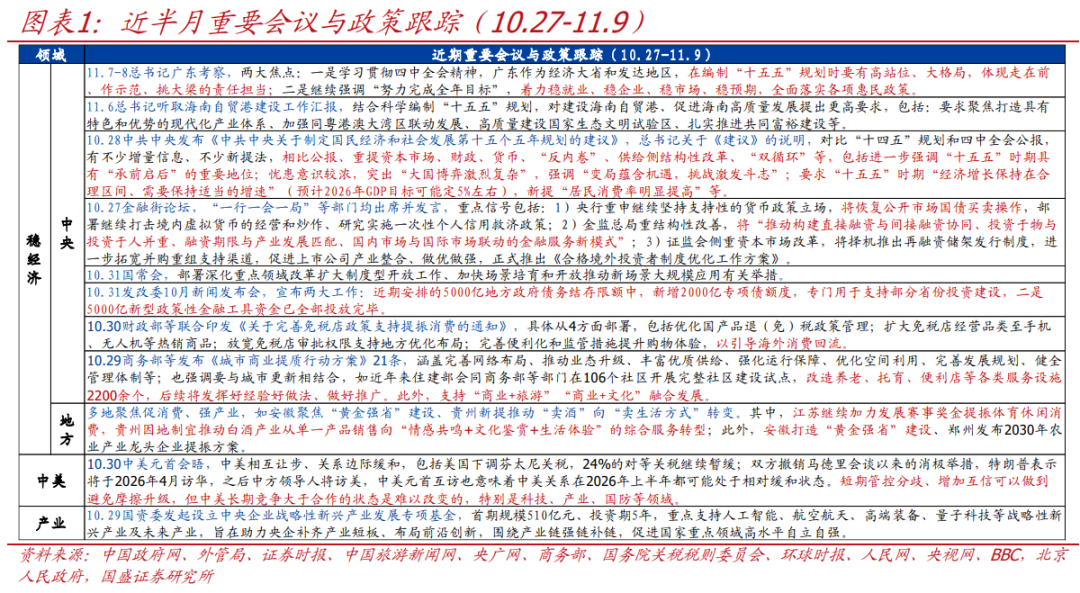 本文节选自国盛证券研究所已于2025年11月9日发布的报告 《 政 策 半 月 观 — 年内政策仍有三大期待》, 具体内容请详见相关报告。