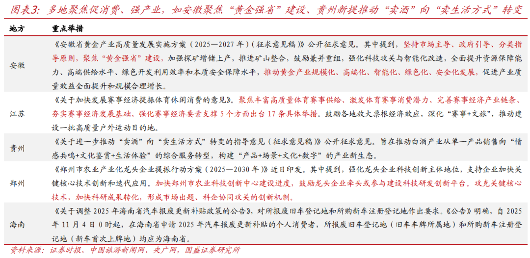 > 地方 政 策 : 多聚焦促消费,安徽“黄金强省”、贵州白酒产业转型。