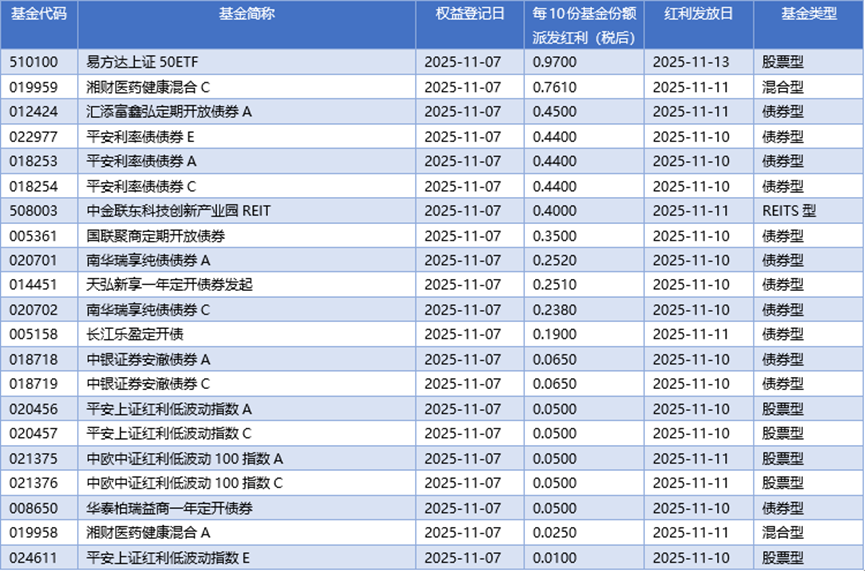 四、11月07日基金分红一览