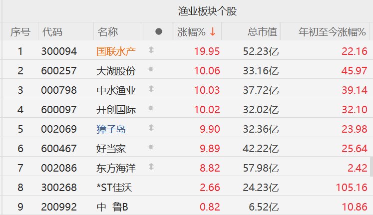 高市早苗涉台谬论越线挑衅,严重冲击中日关系。反应在资本市场上,A股市场渔业股掀涨停潮,其中,国联水产20CM涨停,大湖股份、中水渔业、开创国际、獐子岛、好当家10CM涨停,东方海洋涨近9%。