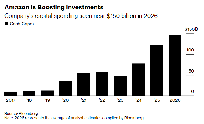 根据汇编的分析师平均预期,亚马逊明年资本支出将突破1470亿美元,约为2023年水平的三倍。摩根大通上周在报告中指出,亚马逊此前主要依赖自有现金流为投资提供资金,当前正是其将债券纳入资本结构、提升融资灵活性的“适宜时机”。