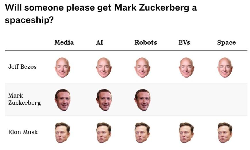 换言之,贝佐斯与马斯克在上演亿万富豪版的“攀比竞赛”。