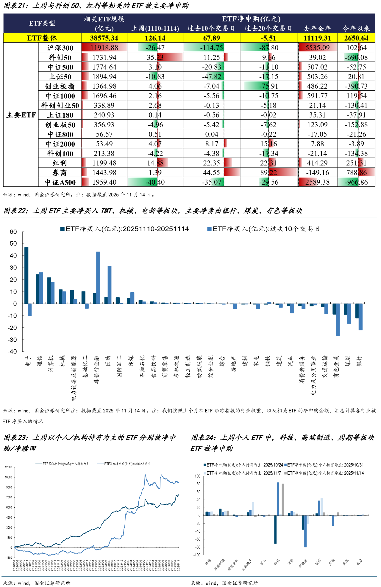 注:本文摘自:2025年11月17日已经发布的《 资金跟踪系列之二十:个人ETF仍是阶段主要增量,杠杆资金小幅净卖出》,如需完整报告或数据库,欢迎联系国金策略团队或对口销售。