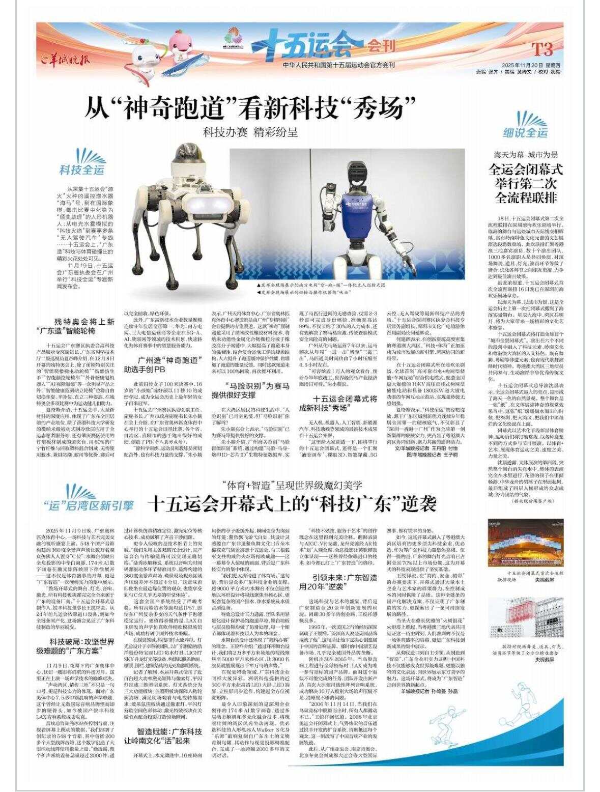 ,广州造“神奇跑道”助选手创PB,此前田径女子100米决赛中,16岁的“小孩姐”陈妤颉以11秒10的成绩夺冠,成为全运会历史上最年轻的女子百米冠军。,十五运会广州赛区执委会副主任、副秘书长,广州市政府副秘书长朱小燚在会上介绍,在广东省奥林匹克体育中心举行的十五运会田径比赛,各个省、自治区、直辖市的选手跑出很好的成绩,创造了PB(个人最好成绩)。,“除科学训练、运动员和教练员密切配合外,也有科技力量的支撑。”朱小燚表示,广州天河体育中心、广东省奥林匹克体育中心赛道都是由广州“专精特新”企业提供的专业赛道。这款“神奇”预制跑道采用了纳米改性橡胶材料技术,将纳米功能性金属化合物微粒分散于橡胶高分子网链中,大幅提高了跑道本身的强韧性,结合复合运动工学的蜂巢结构,大大提升了跑道缓冲保护性能,也增加了跑道的能量反馈。同时这款跑道未来可以100%回收,再次循环利用。,“马脸识别”为赛马提供支撑,在大湾区居民的科技生活中,“人脸识别”已司空见惯,但“马脸识别”你了解吗?,朱小燚在会上表示,“马脸识别”已为赛马等提供很好的支撑。,朱小燚介绍,广州海关首创“马脸智能识别”系统,通过构建“马脸-马身-烙印ID-芯片ID”生物特征数据库,实现了马匹行进间的无感查验,仅需2-3秒即可完成身份核验,准确率高达99%,不仅节约了30%的人力成本,还有效解决了赛马易应激、传统查验模式安全风险高的问题。,广州从化马场运营7年以来,运马频次从每周“一进一出”增至“三进三出”,马匹通关时间也由7小时压缩至4.5小时左右。,“可容纳近1万人的观众看台,预计今年年底竣工,世界级的马产业经济圈指日可待。”朱小燚说。,十五运会闭幕式将成新科技“秀场”,无人机、机器人、人工智能、新能源汽车、科技助残等领域的最新技术成果在十五运会齐聚。,“这里给大家剧透一下,即将举行的十五运会闭幕式,还将是一个汇聚‘液态画布’、裸眼3D、智能穿戴、5G云控、无人驾驶等最新科技产品的秀场。”十五运会深圳赛区执委会科技专班常务副组长、深圳市文化广电旅游体育局副局长何建辉说。,何建辉表示,在创新资源高度密集的粤港澳大湾区,“科技+体育”正加速成为城市发展的新引擎、湾区协同的新纽带。,在十五运会闭幕式所在地欢乐剧场,全球首创“高可靠市电+构网型储能+车网互动”综合供电模式,配套全国最大规模的10KV高压直挂式构网型储能电站和具备1800KW超大放电功率的车网互动示范站,实现毫秒级无感切换。,夏奇峰表示,“科技全运”的惊艳绽放,源于广东区域创新能力连续9年稳居全国第一的硬核底气,不仅彰显了“深圳—香港—广州”作为全球第一创新集群的硬核实力,更凸显了粤港澳大湾区协同创新、聚力共赢的澎湃活力。,