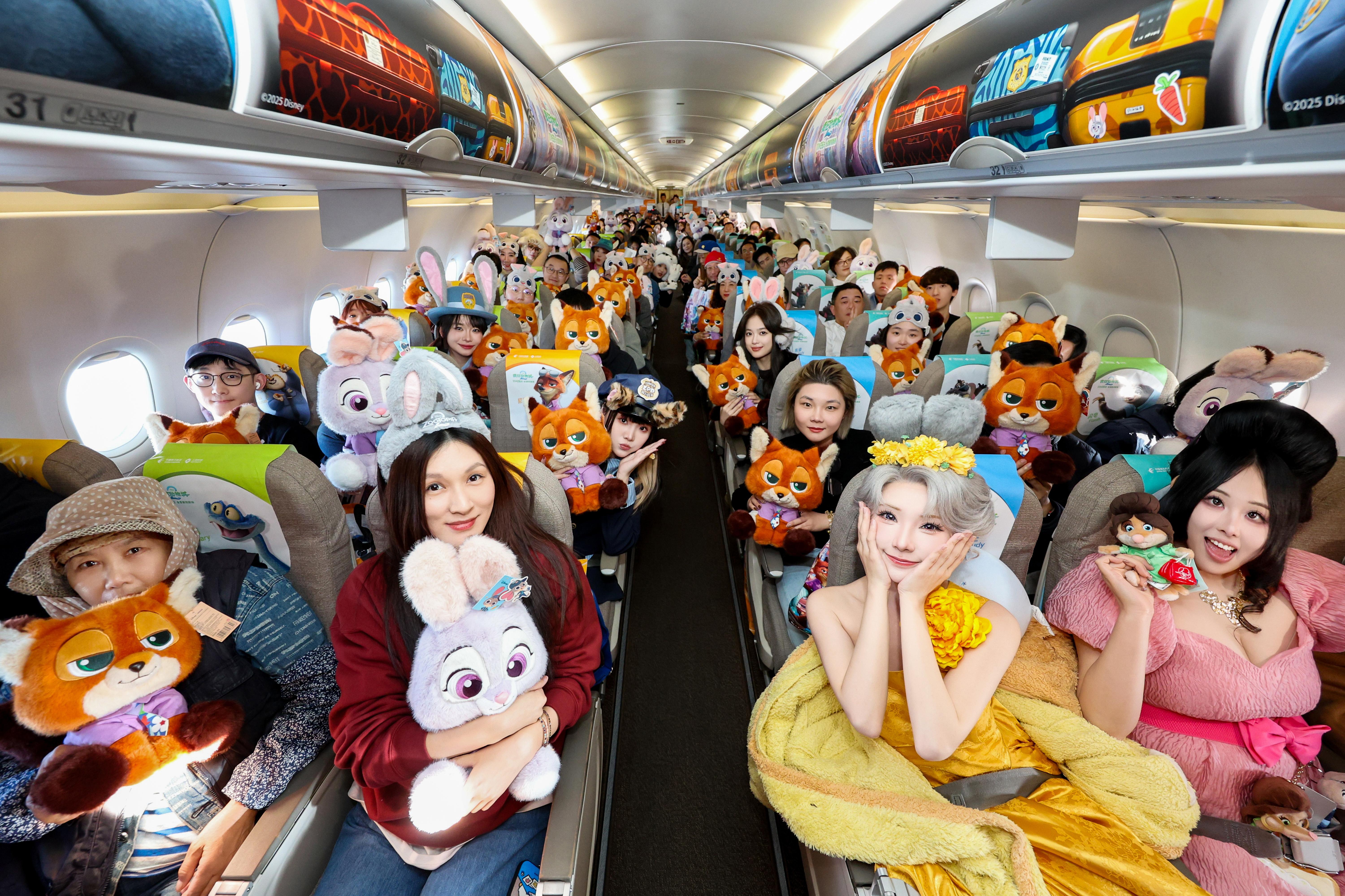 ,此次主题航班以迪士尼现象级IP“疯狂动物城”为核心载体,构建了“航站楼—客舱—空中旅途”的全流程沉浸式体验。在浦东机场T1航站楼,东航B岛值机柜台与自助设备、爱心服务区、休息座椅、客梯、登机口等处均以“疯狂动物城”元素装点,主题布置场景成为旅客争相打卡的地标。,此外,东航与上海迪士尼度假区于2024年5月合作推出的“迪士尼•疯狂动物城号”主题彩绘机也完成了客舱内饰的焕新升级——新电影中动物城的街景以及朱迪、尼克等经典角色跃出银幕,出现在行李架、小桌板与头枕巾等客舱细节中,生动呈现全球唯一“疯狂动物城”的故事与新体验。在航班飞行途中,机上乘务员还佩戴“疯狂动物城”主题饰品,在互动环节为旅客送上多种周边礼品。,