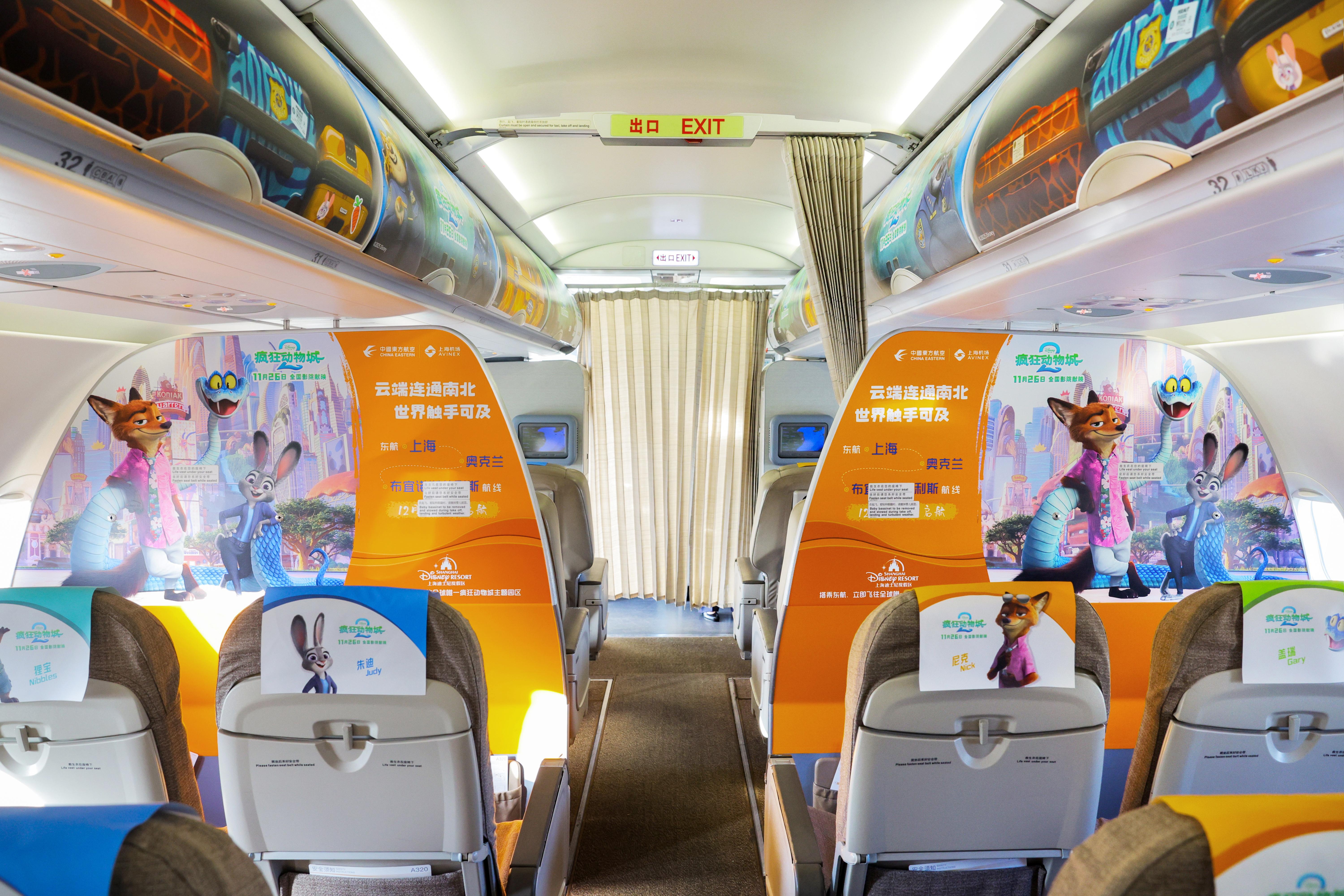 11月19日,由中国东方航空与迪士尼影业焕新升级的“迪士尼•疯狂动物城号”彩绘机正式起航,执行MU5161主题航班,从上海浦东国际机场飞赴北京首都国际机场,为151名首航旅客打造了一场从地面到云端的“空中奇旅”。,