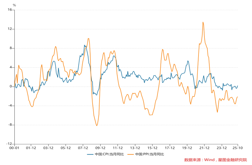 从基本面来看,当前经济呈现温和复苏态势。受房地产领域整体表现偏弱的影响,GDP增速保持平稳,前三季度同比分别增长5.4%、5.2%和4.8%。物价水平亦处于缓慢回升通道,其中PPI同比已连续37个月处于负值区间,CPI同比也多在零轴附近波动。然而,值得关注的是,至10月PPI环比实现自去年12月以来首次转正,CPI同比亦回升至0.20%,为今年1月以来的最高值。这些信号表明,经济可能正逐步企稳,处于复苏前期阶段,并有望在未来向繁荣周期过渡。在此过程中,基本面预计将对A股形成逐步增强的支撑作用,而非拖累。