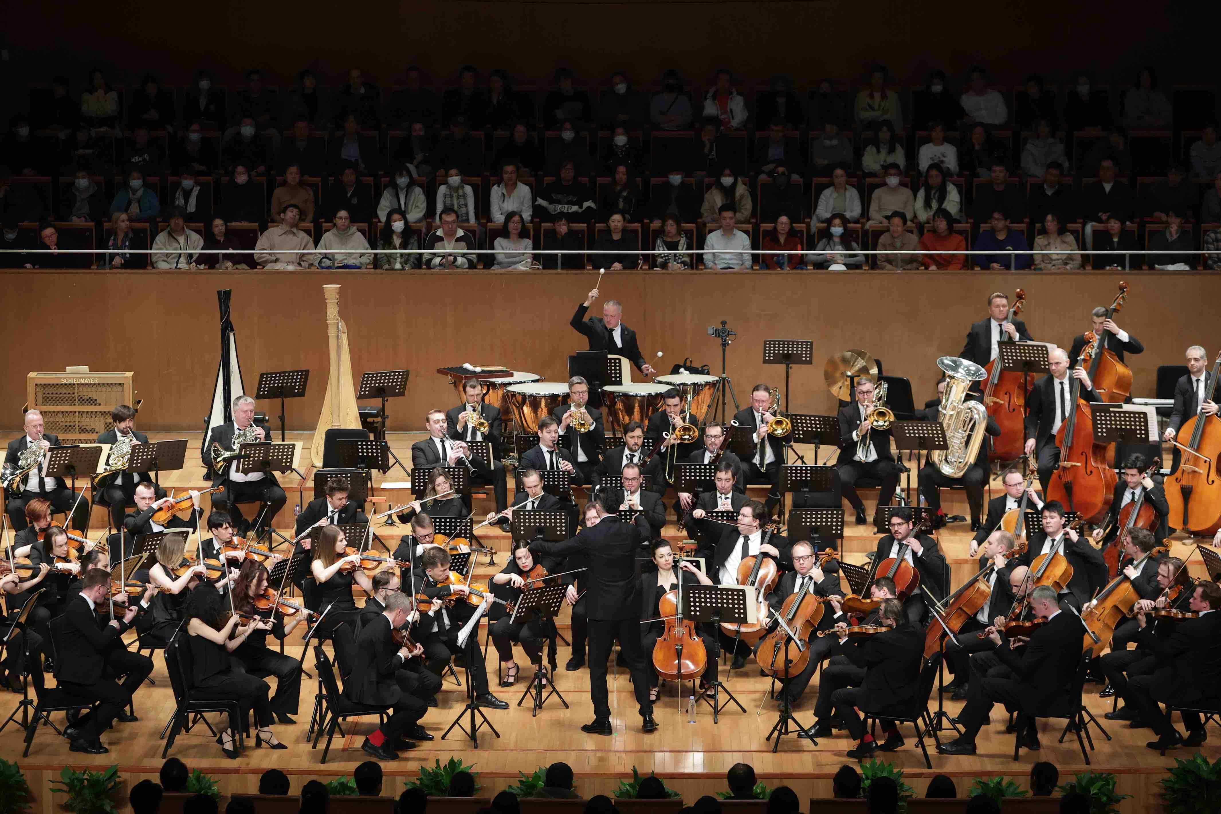 ,此次音乐会以施特劳斯和柴科夫斯基两部作品拉开帷幕。首先登场的是施特劳斯晚年于1948年所作的“告别之作”《最后四首歌》,歌词选自黑塞与艾兴多夫的诗篇。无数女高音曾为该作品留下经典诠释,此番由戴安娜·诺西列娃演唱,为舞台注入一股未经雕琢的诗意张力。诺西列娃的嗓音清亮明澈,在库伦奇斯的细腻调度下,与乐团交相呼应,在细微处自然流转。,下半场上演的柴科夫斯基《第五交响曲》于1888年完成,以命运动机构建出四乐章贯穿的主题发展。库伦奇斯打破常规布局,令乐团第一与第二小提琴声部互换,打破传统听觉惯性,激发乐手间新的能量回路。演奏从第一乐章即启动强烈推进,在极快节奏与突如其来的情绪起伏中,将柴氏“命运搏斗”的精神图式推至极致。木管声部交代清晰,动机织体饱满,乐曲终章以压迫式的速度与强度宣告一种激烈的超越与挣脱。,
