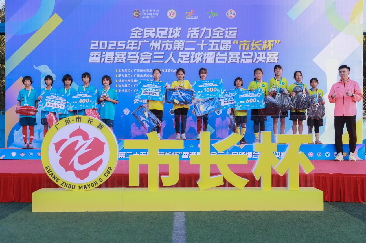 11月29日,2025年广州市第二十五届“市长杯”香港赛马会三人足球擂台赛总决赛在燕子岗体育场举行,广州市体育局、香港赛马会、广州市群众体育指导中心、广州市足球协会相关领导,赛事形象大使、赛事裁判长出席颁奖仪式。,经过全市十一区分区预赛的激烈角逐,最终脱颖而出的各组别冠军队伍共计77支精英强队会师总决赛,向冠军发起最强冲击。球场之上,运动员们技艺精湛、配合默契,攻防转换节奏明快,充分展现了三人足球的独特魅力与广州足球深厚的群众基础。,