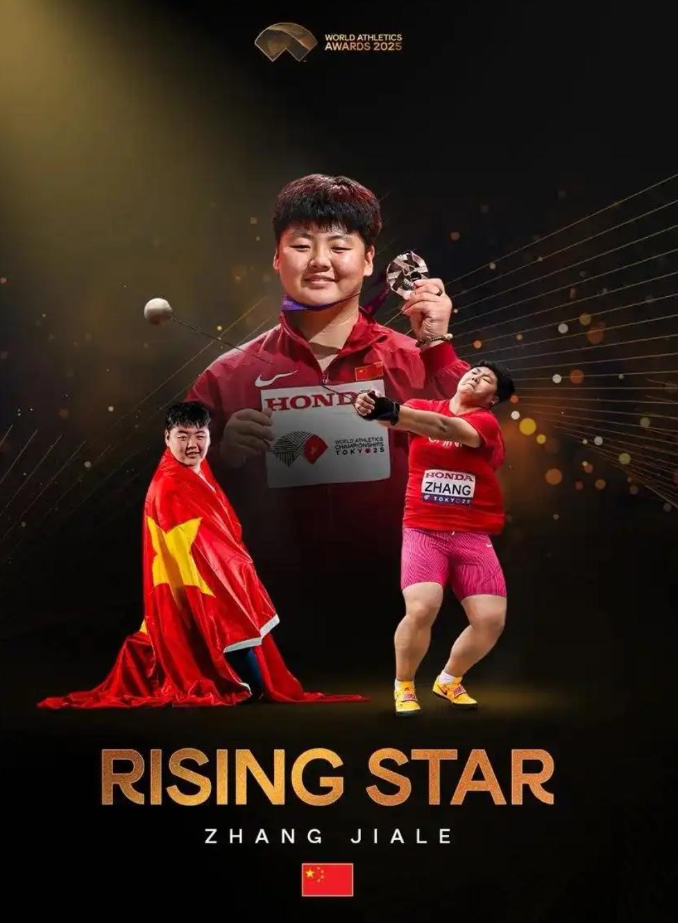 ,19岁的中国链球新星张家乐获得年度最佳女子新星奖,她在今年两次打破世界青年纪录,在8月份的全国田径锦标赛上,她以77米24的成绩夺冠,这是亚洲历史第3好成绩,距离王峥保持的亚洲纪录只有0.44米的差距。东京世锦赛上,张家乐成功收获铜牌,并在十五运会上凭借第5投76米44的成绩斩获一枚银牌。,2025年世界田联各奖项得主,年度最佳男子运动员:杜普兰蒂斯(撑杆跳高),年度最佳女子运动员:麦克劳克林(400米和400米栏),年度最佳女子径赛运动员:麦克劳克林,年度最佳女子田赛运动员:奥里斯拉格斯(跳高),年度最佳女子非场地赛运动员:玛利亚·佩雷斯(竞走),年度最佳男子径赛运动员:万永伊(800米),年度最佳男子田赛运动员:杜普兰蒂斯,年度最佳男子非场地运动员:萨维(马拉松),年度最佳女子新星:张家乐(链球),年度最佳男子新星:塞雷姆(3000米障碍赛),文|记者 柴智,图|世界田联官网,瑞典撑杆跳高名将杜普兰蒂斯连续第三年当选年度最佳,他今年在室内赛和室外赛的16项比赛中保持全胜战绩,并4次刷新自己所保持的世界纪录,在东京田径世锦赛将人类高度极限提升到6米30。