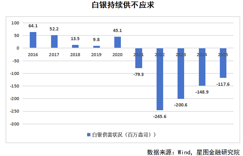 第三,白银供需结构持续紧张。白银的供给对价格不敏感,主要是超过三分之二的白银产量源自铅锌、铜及金矿的伴生开采,因此白银在供给上具有较强的刚性。自2021年以来,白银市场已连续数年呈现供给短缺,导致主要市场库存大幅消耗。相较于2019年同期,伦敦金银市场协会(LBMA)库存减少26.81%,上海黄金交易所(SGE)库存更是锐减78.71%。鉴于2025年供需缺口可能延续,持续的补库与逼仓压力也成为推动银价快速上涨的关键力量。
