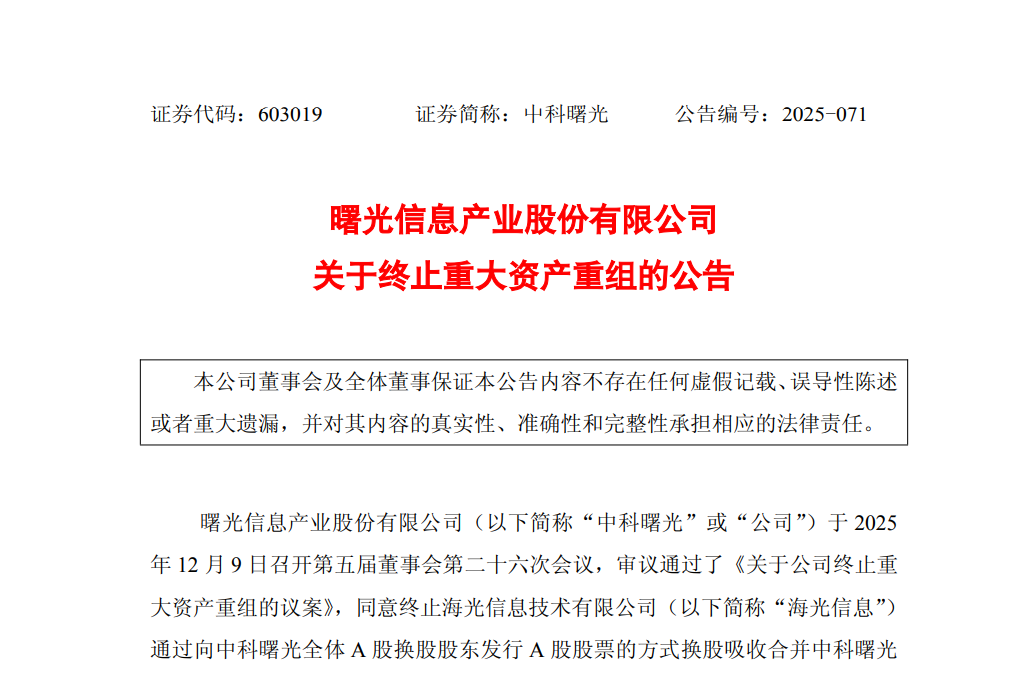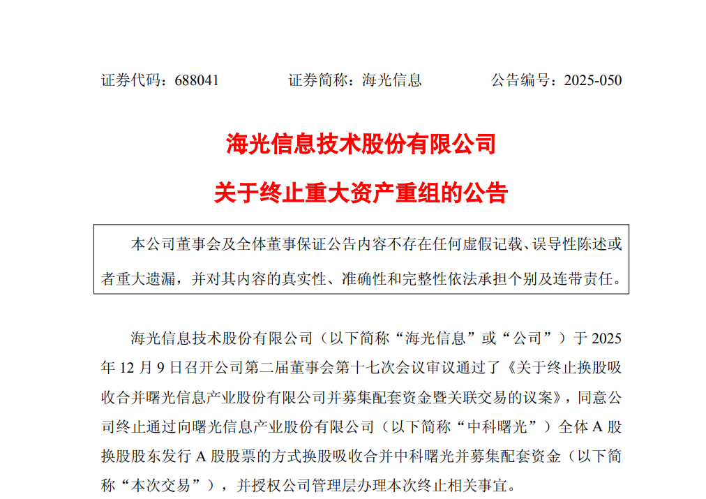 双方公告指出,本次重组涉及换股吸收合并及配套募资,交易规模庞大、相关方众多,方案论证耗时较长。按原计划,海光信息需以1:0.5525的换股比例向中科曙光股东发行股份,总计发行8.08亿股,同时注销中科曙光持有的27.96%海光信息股份。复杂的权属调整与市场环境动态变化叠加,最终导致实施条件未成熟。