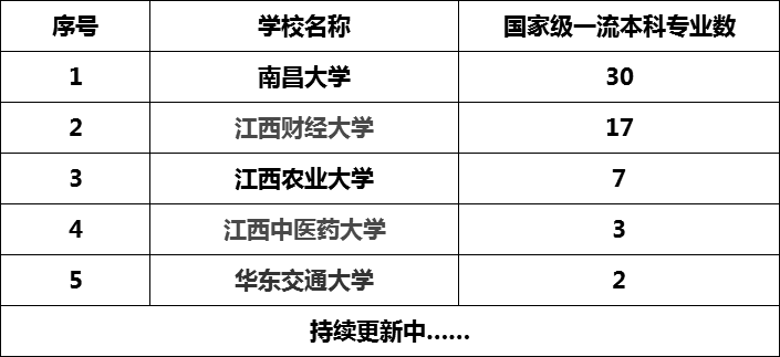 一、江西省国家级一流本科专业建设点名单公示(持续更新)