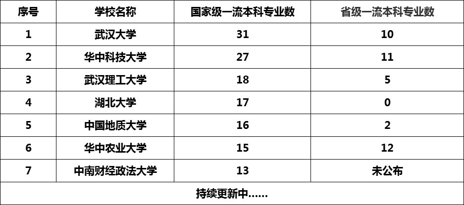 一、湖北省国家级一流本科专业建设点名单公示(持续更新)