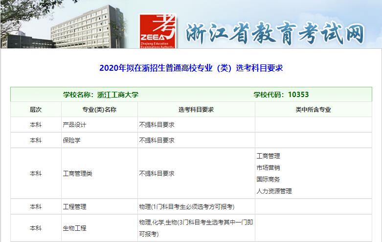 根据浙江省教育考试院公布的2020年选科要求可知,浙江工商大学招生专业的具体选科要求如下: