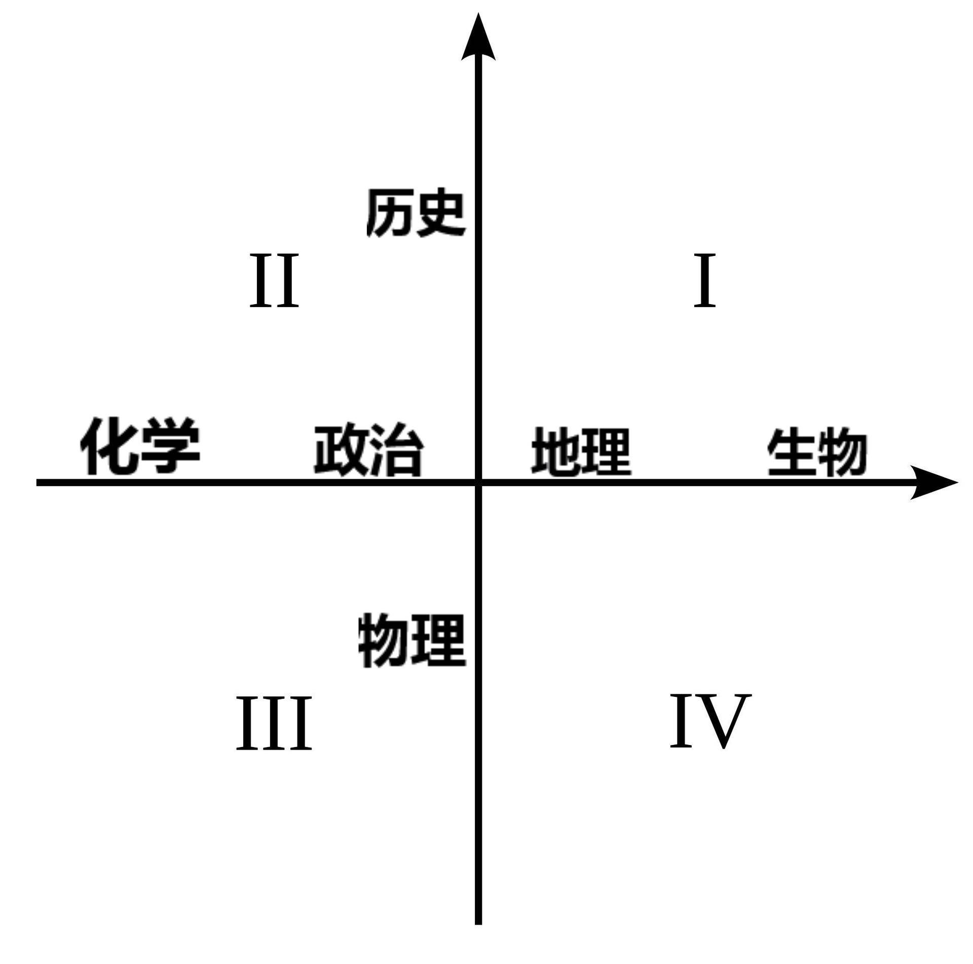 你可以在纸上画一个平面坐标系,从左往右按照自己擅长程度,依次在横坐标轴上列出生物、政治、地理、化学这四门科目。