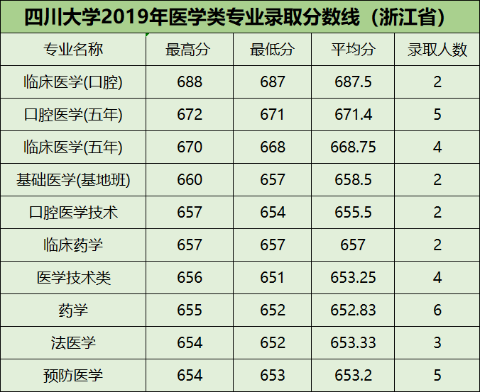 (标注:除了已在2019年实行新高考的浙江、上海两省外,川大的医学类专业在其他省仅仅招生理科生,所以同学们看到的都是理工类的分数线哦!)