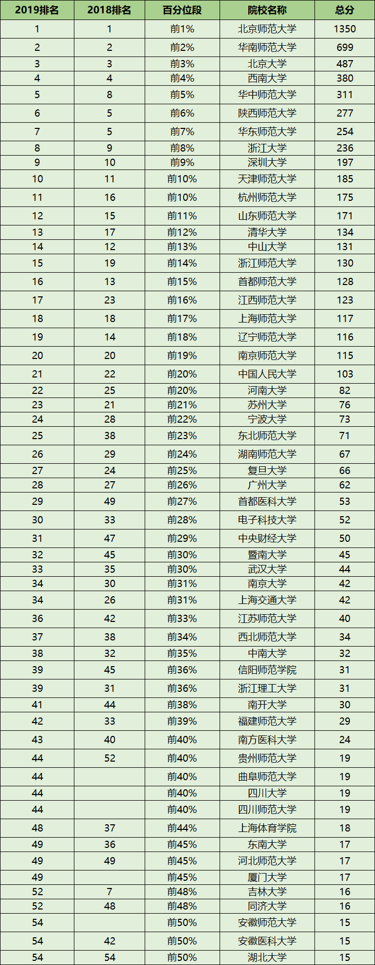 三、软科中国最好学科排名2019-心理学