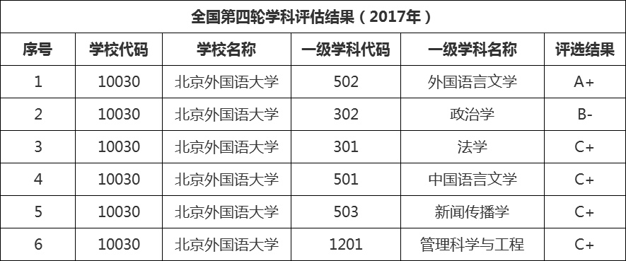 另外,除了外国语言类专业外,北京外国语大学的政治学类、法学类、新闻传播学类等专业也都获得了非常不错的评估结果。