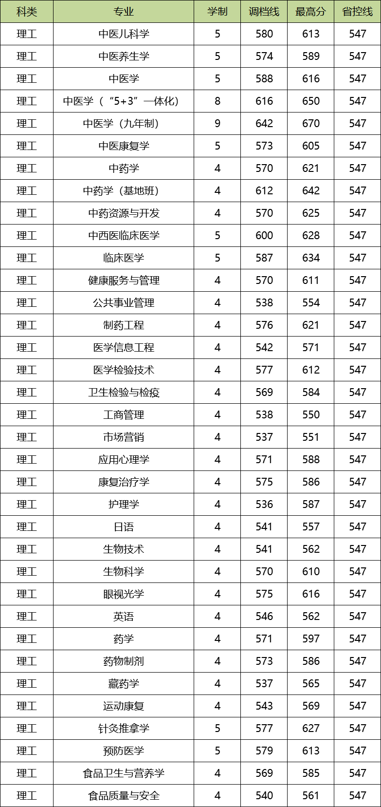 成都中医药大学2019年在四川收分最高的普通理科专业为中医学(九年制),最高分为670分,最低分为642分;收分最低的普通理科专业为护理学,最高分为587分,最低分为536分。