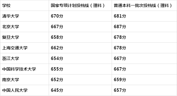 下面我们再看看高考录取分数线的情况,看看到底能够比普通批次录取分数线低多少分。