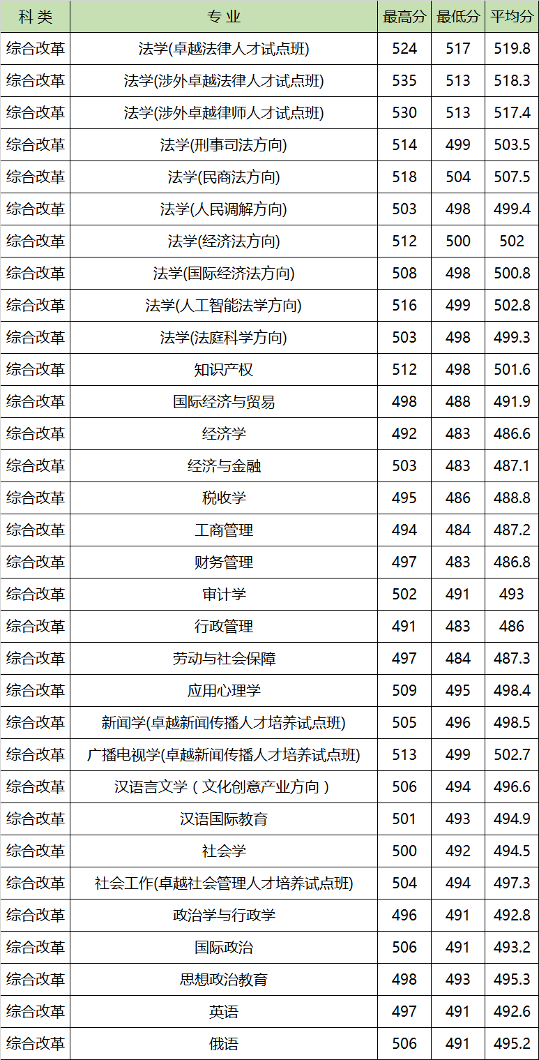 三、上海政法学院各专业录取分数线