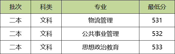 贵州大学本科二批2019年在贵州收分最低的普通文科专业为物流管理,最低分为531分。