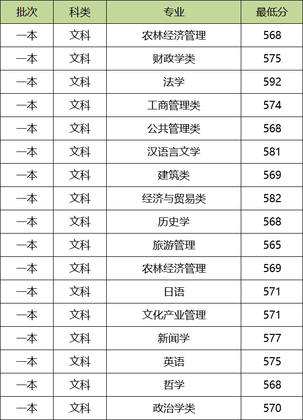 贵州大学本科一批2019年在贵州收分最低的普通文科专业为旅游管理,最低分为565分。