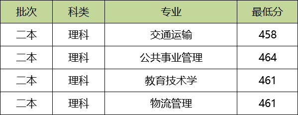 贵州大学本科二批2019年在贵州收分最低的普通理科专业为交通运输,最低分为458分。