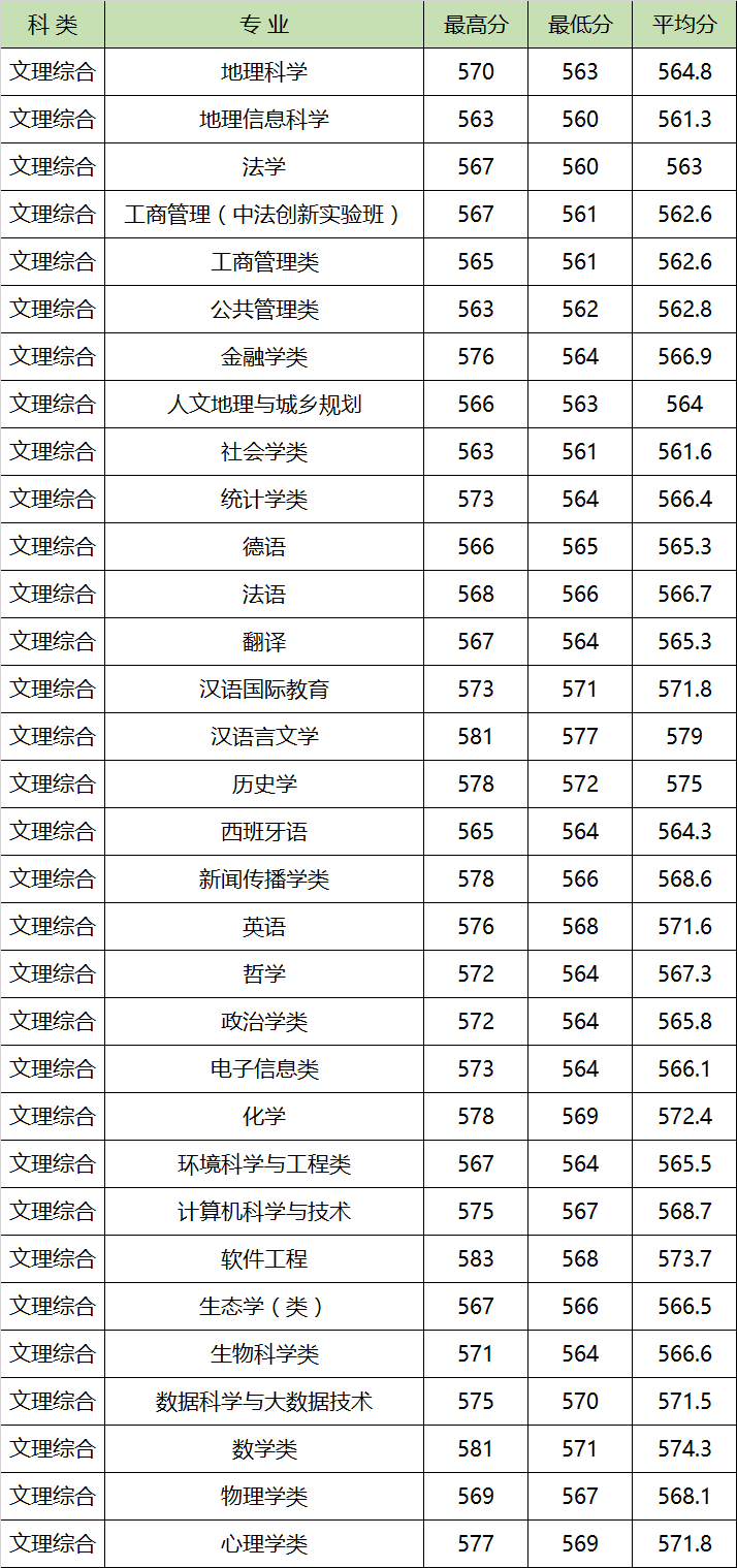 三、华东师范大学各专业录取分数线