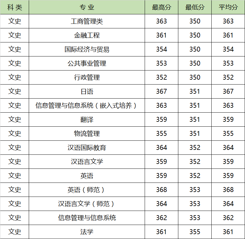 南京信息工程大学2019年在江苏省收分最高的文科专业为英语(师范),最高分为368分,最低分为353分;收分最低的文科专业为工商管理类,最高分为363分,最低分为350分。