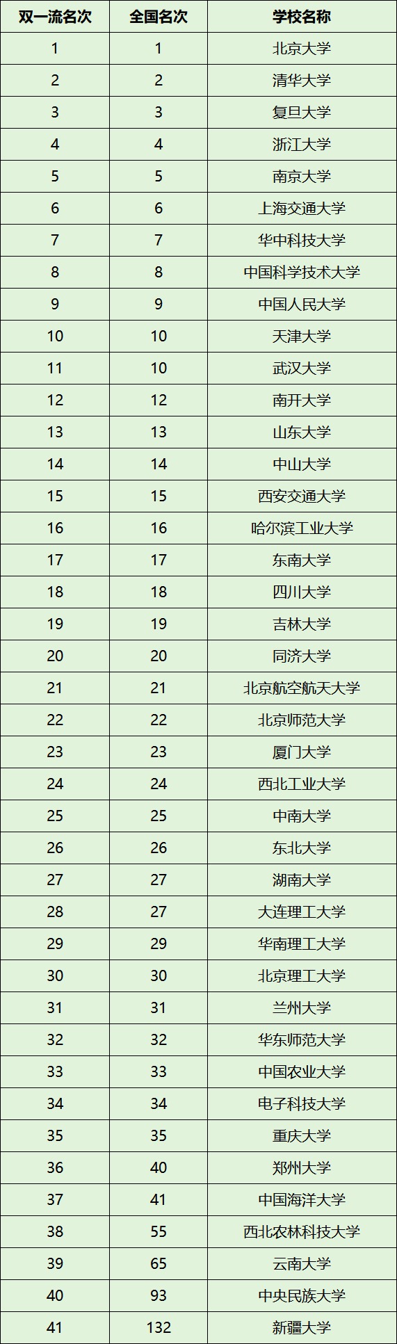 根据校友会2020年中国大学排名可知,全国最新双一流大学排名如下:
