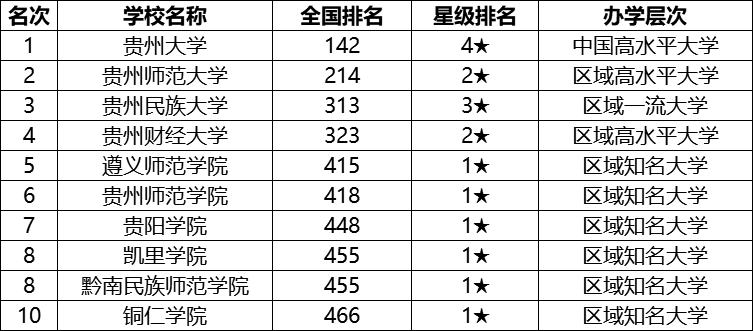 《校友会2020贵州省最好大学排名10强》如下: