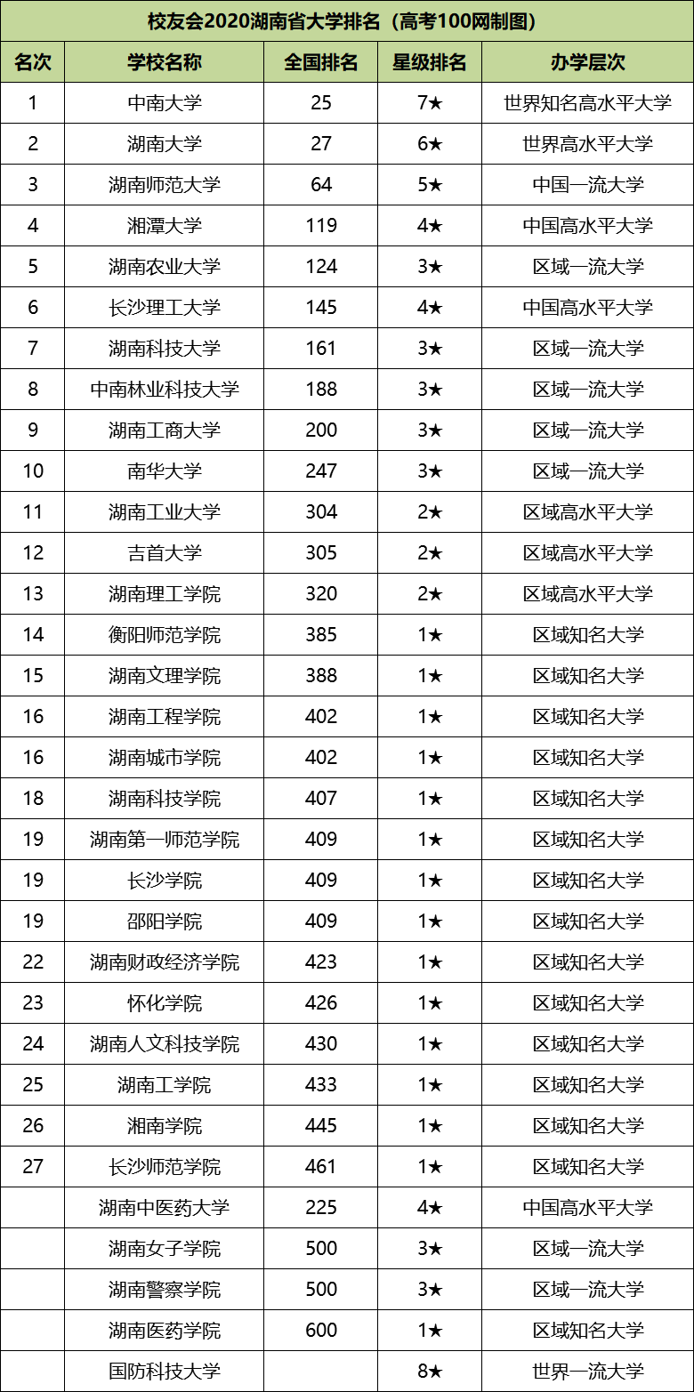 以下是湖南省2020年大学排名具体名单,供同学们查阅!