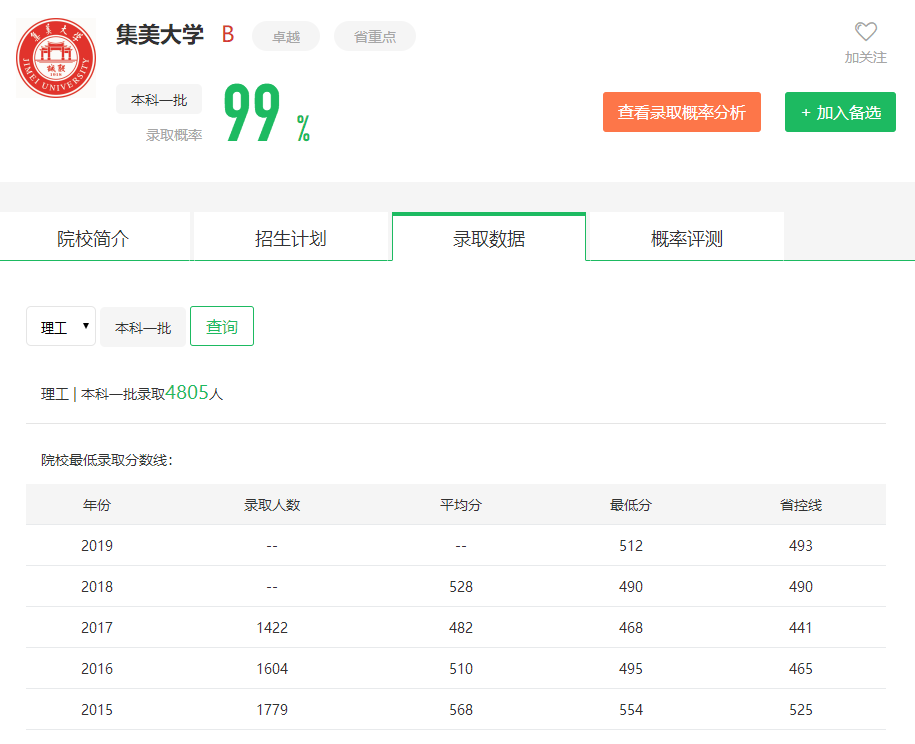 根据圆梦志愿及集美大学官网公布的招生录取数据可知:
