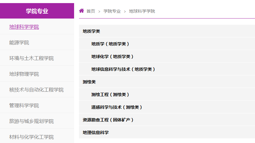 根据学校官网公布数据可知,成都理工大学的地质学类专业有:地质学、地球化学、地球信息科学与技术