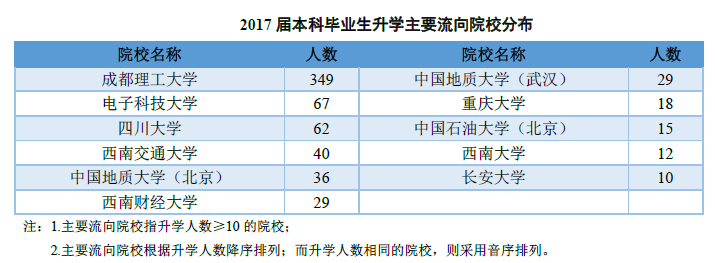 其中选择升学学生当中,学生主要流向成都理工大学、电子科技大学、四川大学。