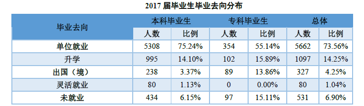根据成都理工大学出具的2017届毕业生就业报告可知,成都理工大学2017届毕业生总体就业率为93.10%,其中本科毕业生就业率为93.85%,专科毕业生就业率为84.89%。