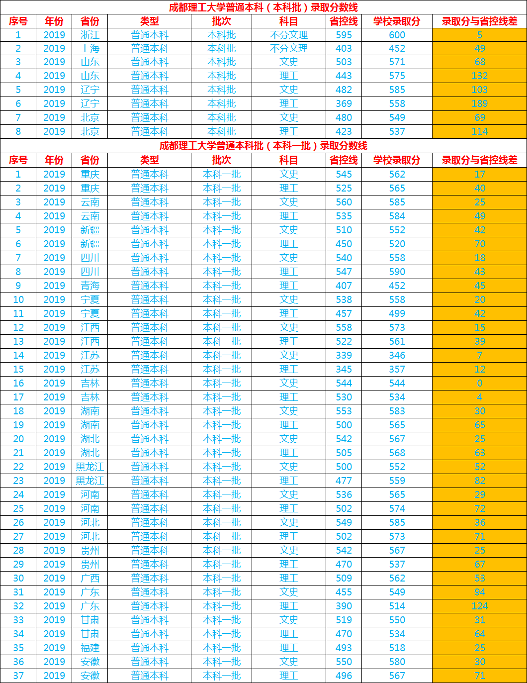 小编搜集整理成都理工大学2019年普通本科批次录取分数线,供同学们填报志愿时参考。